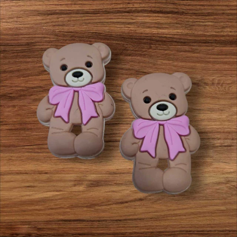 APLIQUE EMBORRACHADO URSO CORPINHO LACO ROSA - 2 UNIDADES